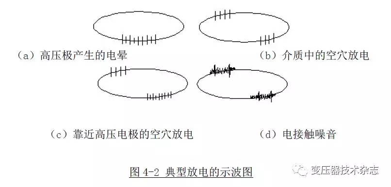 图1-3为不同类型的局部放电示波图,示波图是在接近起始电压时得到的。
