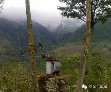 当配电变压器容量在50KVA~315KVA时一般采用双杆式配电变压器台。配电变压器台由一主杆水泥杆和另一根副助杆组成,主杆上装有高压跌落式熔断器及高压引下线,副杆上有二次反引线。双杆配电变压器台经单杆配电变压器坚固。